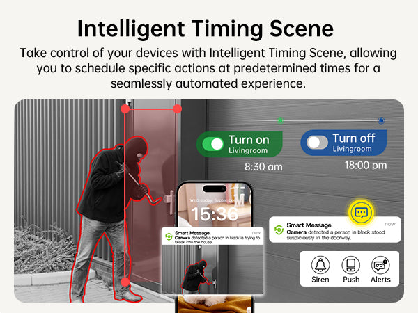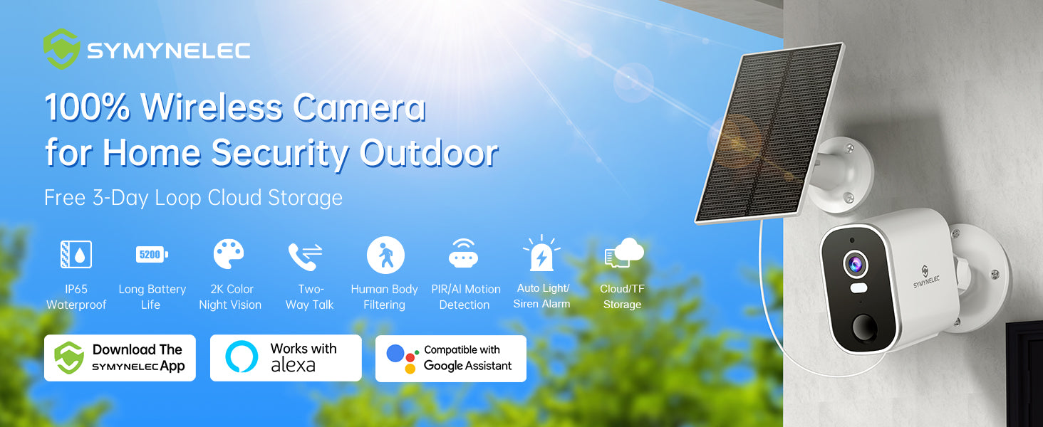 - Active Defense & 2-Way Audio Talk: Stop crime before it happens. When an uninvited guest is detected, the outdoor camera can automatically trigger a loud piercing siren and flashing spotlight to scare them off. Use the built-in microphone and speaker via the Symynelec App to warn off intruders or simply talk to delivery drivers from anywhere. Works seamlessly with Alexa