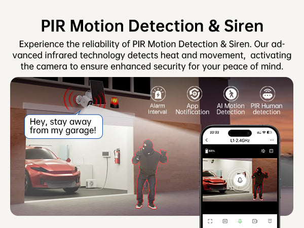 Experience the reliability of PIR Motion Detection & Siren. Our advanced infrared technology detects heat and movement, activatingthe camera to ensure enhanced security for your peace of mind.