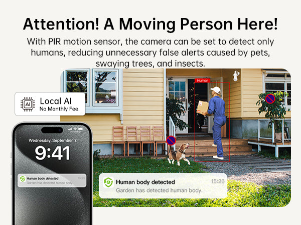 Our AI Human Detection technology intelligently identifies human movement, reducing false alarms for your home security system. This feature enhances surveillance accuracy, providing real-time alerts and precise tracking to ensure your security cameras effectively monitor your property for potential threats.