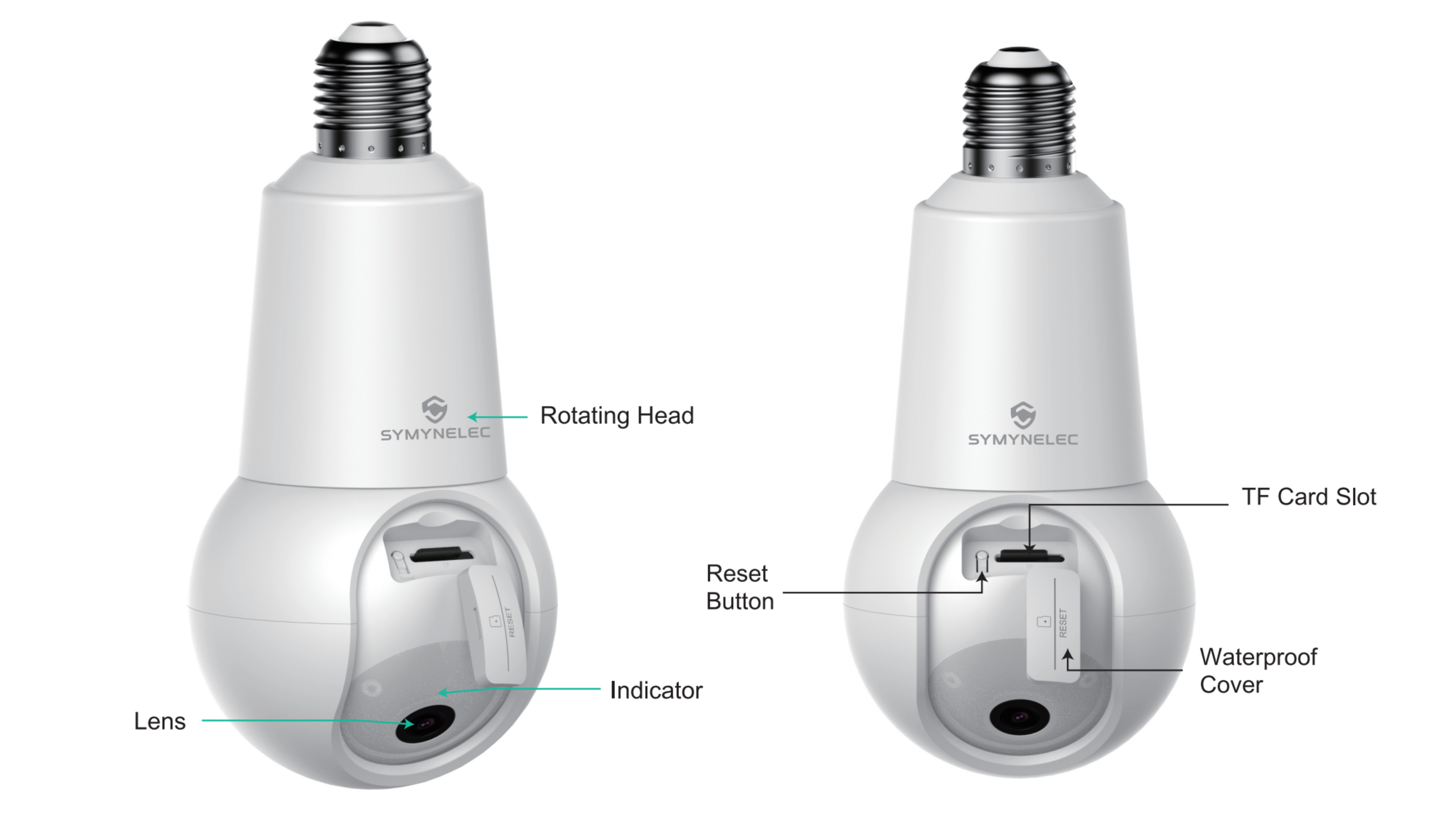 Quick Installation: Install the camera like a regular bulb in an E26/E27 socket. No drilling or wiring required. Set up in just 1 minute using the "Symynelec" app.