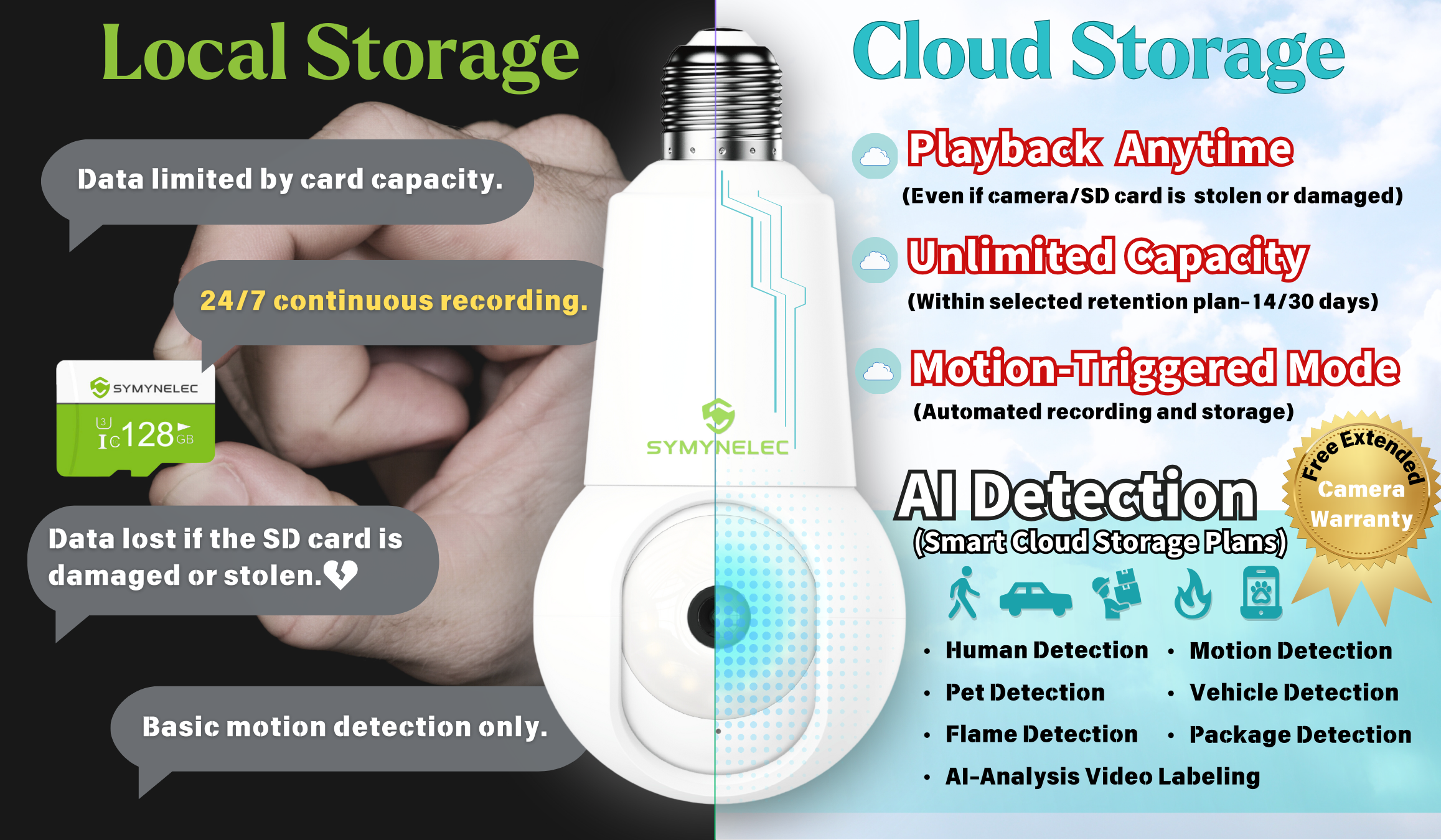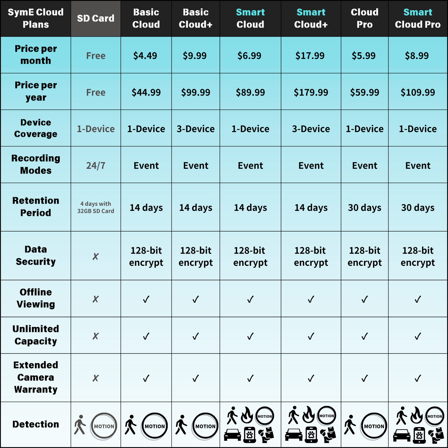 Our cameras and app are FREE to use with no mandatory payments. For adding extra protection to your camera and recording, you can subscribe to one of our SymE Cloud Plans, available on Symynelec app only. Click here to read about our cloud policy.