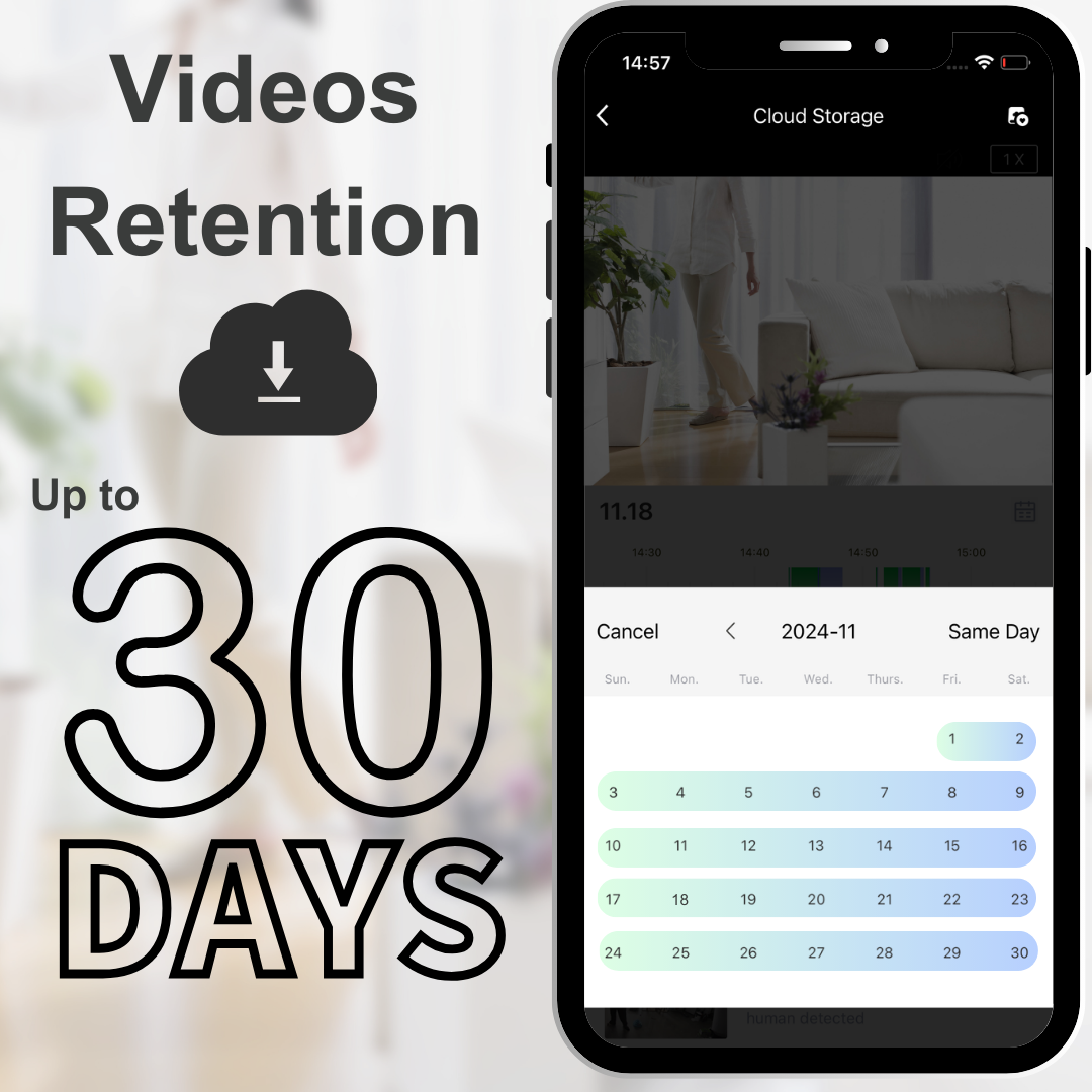 Safeguard your important recordings with secure storage that keeps videos for up to 30 days, ensuring you can access them when needed.
