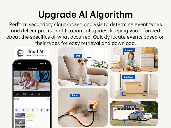 Our Upgraded AI Algorithm enhances the accuracy and efficiency of your home security system by improving object detection, motion tracking, and alert precision. This advanced technology reduces false alarms and ensures your security cameras can quickly identify and respond to real threats, providing smarter, more reliable surveillance.