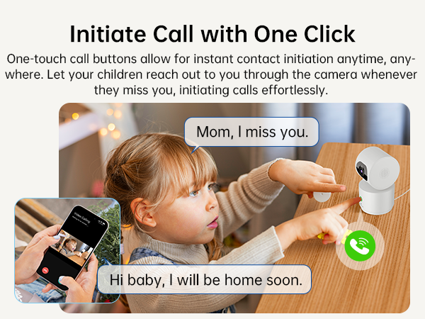 Effortlessly connect with loved ones using one-touch call buttons. Whether your children miss you or just want to check in, they can easily initiate calls through the camera at any time.