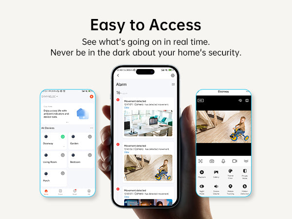 Easily manage your Symynelec camera from your smartphone with just a few taps. Whether you're at work, traveling, or simply away from home, you can view live footage in real-time to see exactly what's happening. Get instant alerts, monitor activity, and always stay informed about your home's safety, day or night. Never be in the dark about your home's security again.