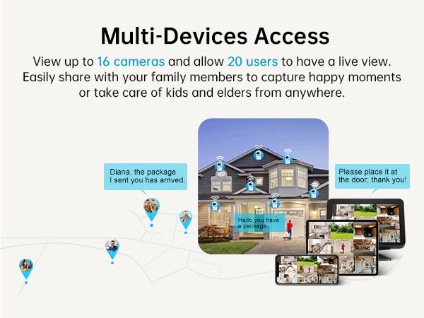 Our Multiple Device Access feature allows you to connect a single security camera to multiple devices, making it easier for family members to monitor your home security system from their smartphones, tablets, or computers. This capability ensures that everyone can stay informed and access real-time video feeds, enhancing the overall convenience and effectiveness of your security cameras.
