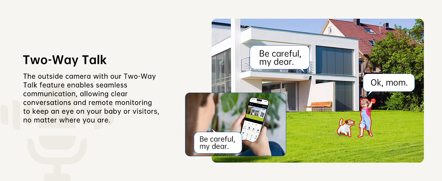 - Two-Way Audio & Siren: Communicate in real-time with two-way talk and deter intruders with a motion-activated siren. Receive immediate alarm notifications on your smartphone.