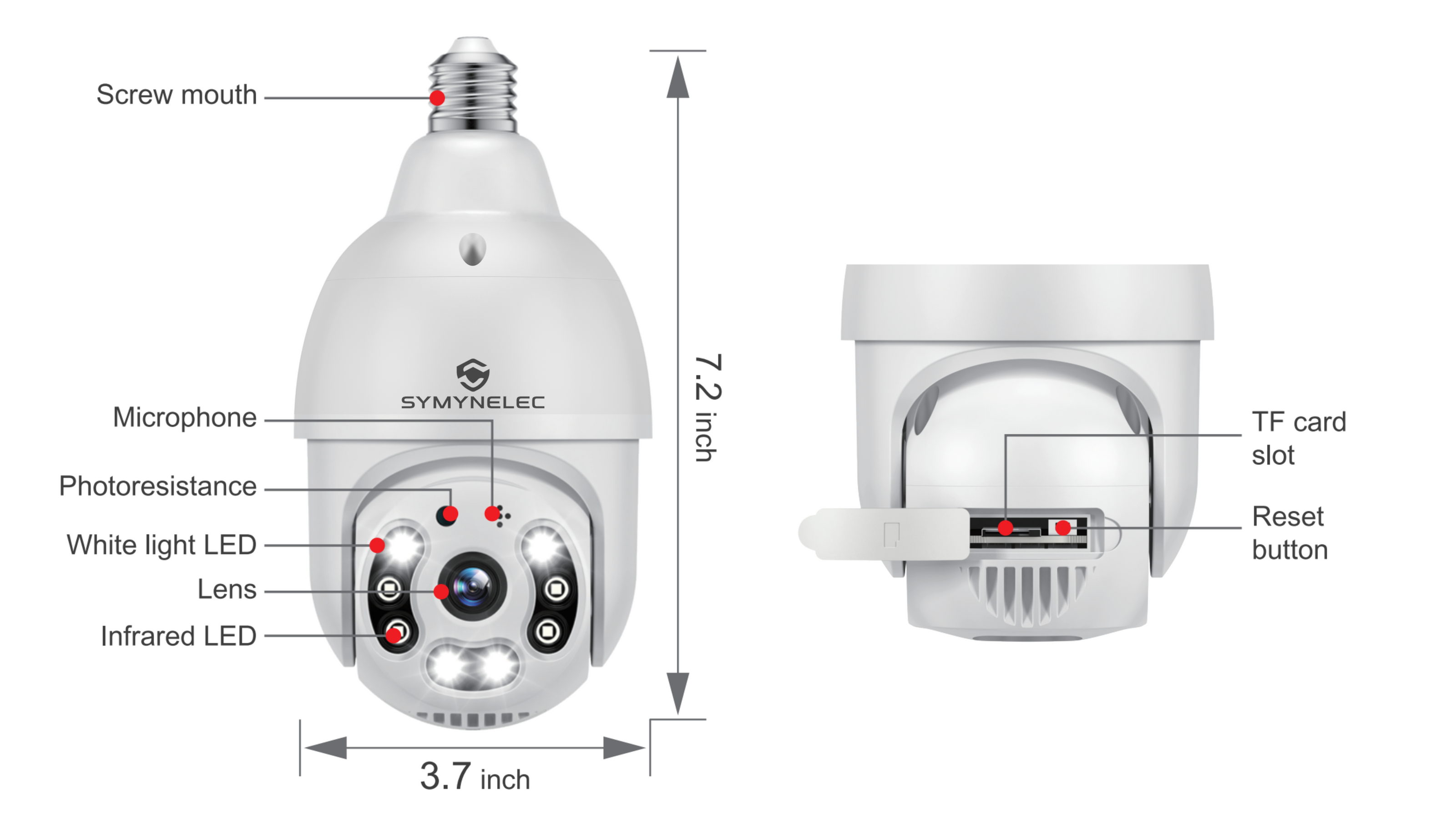 - E27/E26 Light Bulb Socket Installation: Easily install the camera by screwing it into any standard light bulb socket—no wiring required.