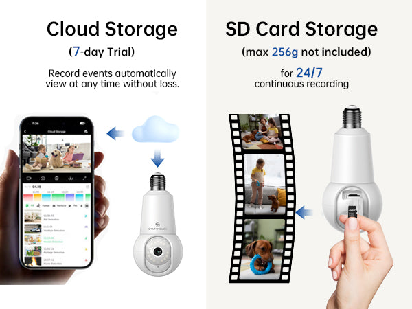 Installation rapide : Installez la caméra comme une ampoule ordinaire dans une douille E26/E27. Aucun perçage ni câblage requis. Installation en seulement 1 minute grâce à l'application « Symynelec ».