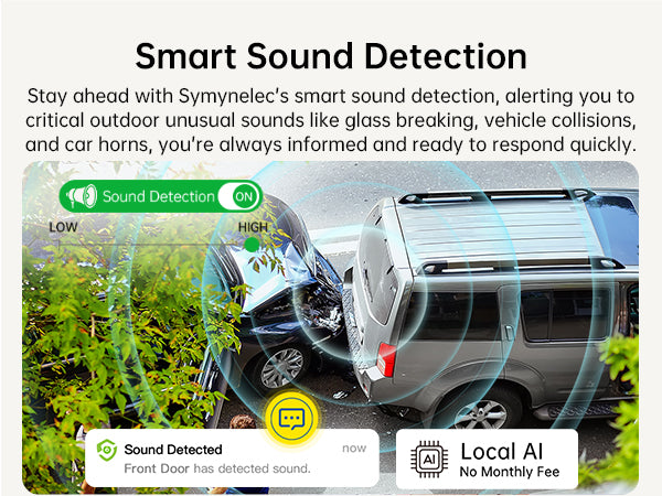 Notre technologie de détection sonore par IA analyse intelligemment les signaux audio pour identifier les sons inhabituels, améliorant ainsi votre système de sécurité domestique. Cette fonctionnalité fournit des alertes en temps réel en cas de perturbations potentielles, garantissant que vos caméras de sécurité vous tiennent informé des événements importants, du bris de verre aux bruits inhabituels autour de votre propriété.