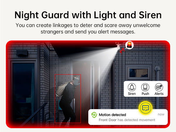 Notre fonction d'alarme sirène agit comme un puissant moyen de dissuasion, activant une alarme forte lorsqu'une activité inhabituelle est détectée, protégez votre maison la nuit. Cette partie intégrante de votre système de sécurité domestique améliore la protection pendant la nuit, vous alertant et effrayant les intrus potentiels. Grâce à cette fonction, vos caméras de sécurité travaillent sans relâche pour assurer la sécurité de votre propriété.